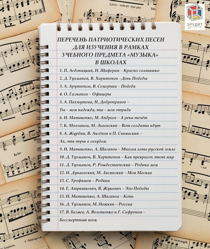 Информационный лист «Патриотические песни в школьной программе»: лист 1, лист 2