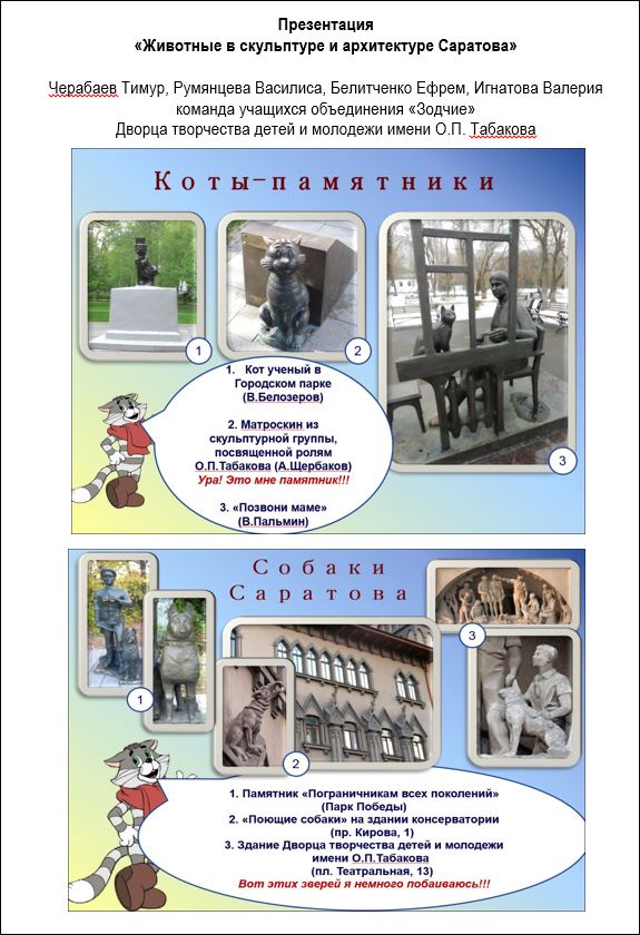 Команда учащихся объединения "Зодчие". Животные в скульптуре и архитектуре Саратова