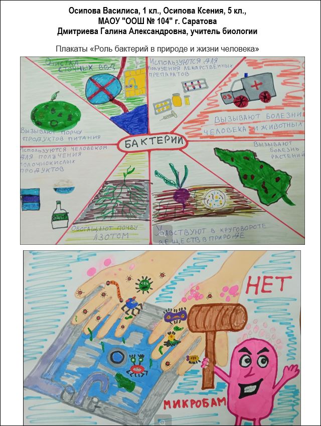 Осипова Василиса и Осипова Ксения. Плакаты "Роль бактерий в природе и жизни человека"